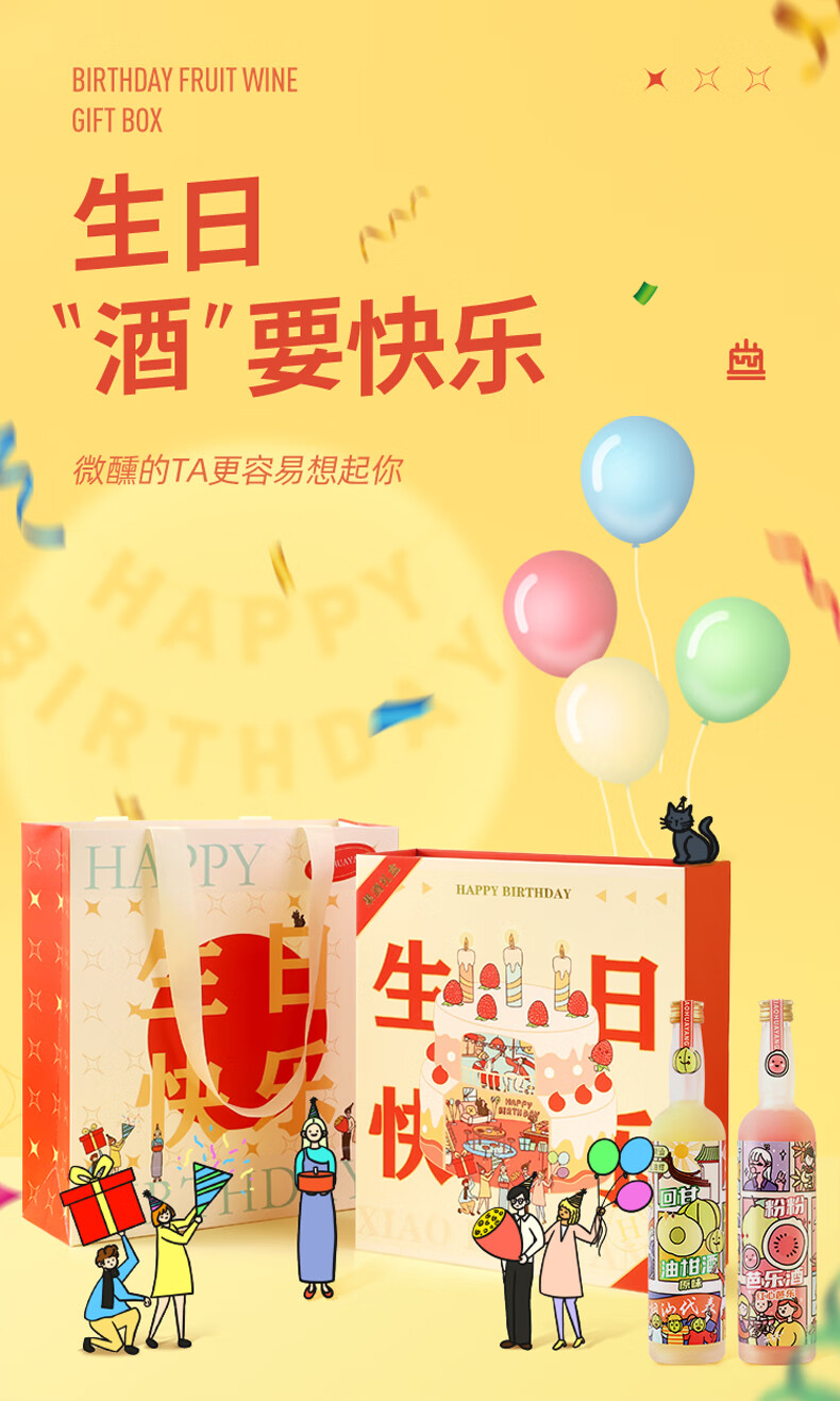 小花樣生日快樂常規禮盒 258ml*2瓶 (青梅酒+荔枝酒)