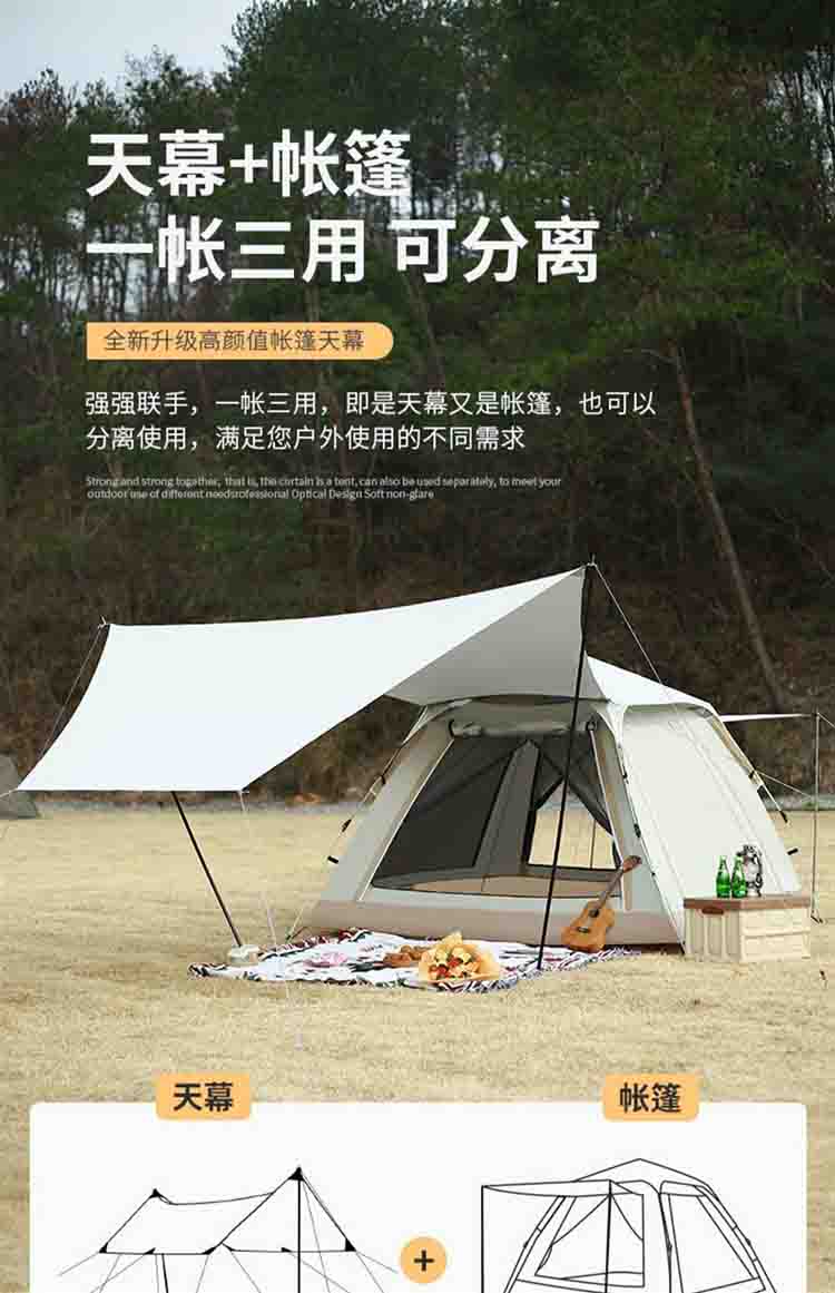 190T滌綸,PU涂層,防水2500mm 外帳:190T滌綸 天幕,牛津布 底賬:210D牛津地席,防水2500mm 撐桿:全自動速彈玻璃鋼支架
