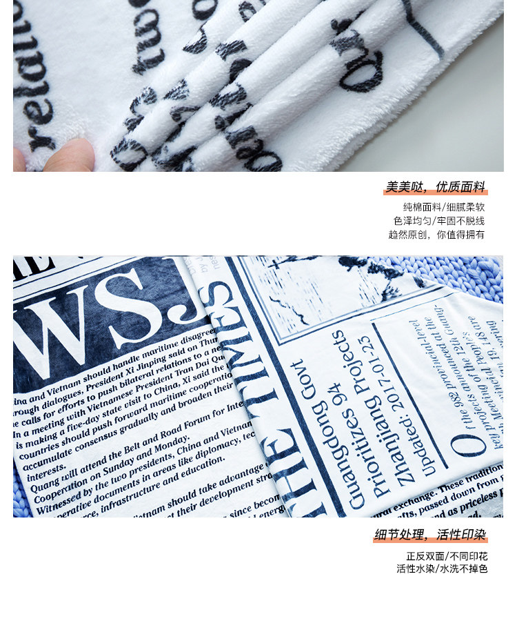 趨然(英文報紙)原創空調毛毯 法蘭絨午休被子英文報紙蓋毯